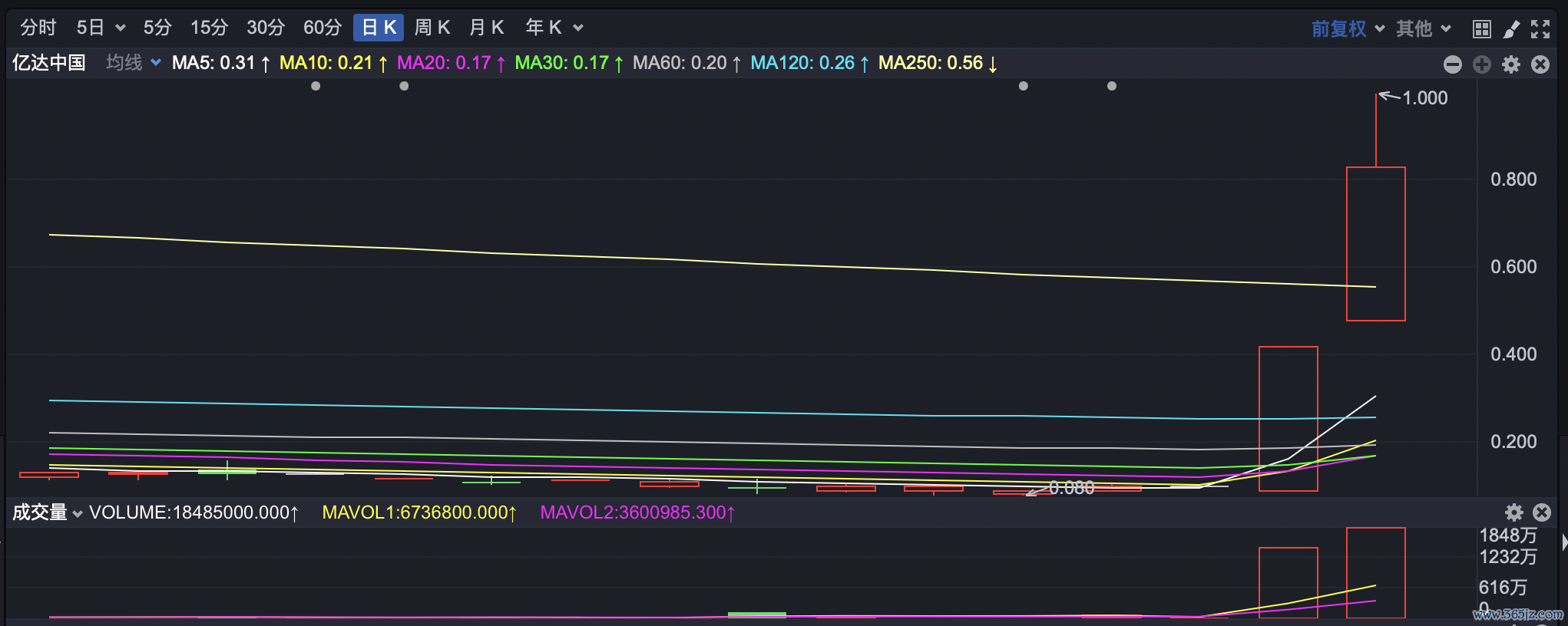 而在昨天,亿达中国的涨幅达到惊人的320%。