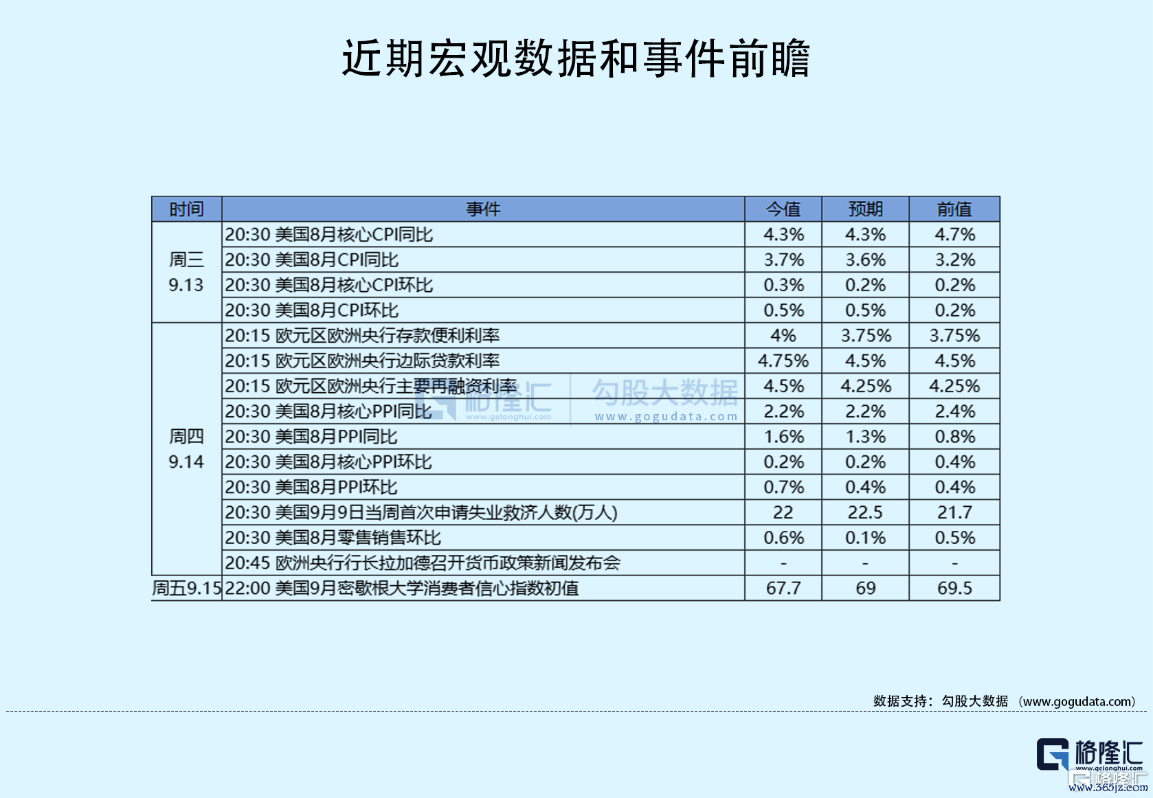 美国9月密歇根大学消费者信心指数初值 67.7,预期69.1,前值69.5。美国9月一年期通胀率预期 3.1%,预期3.50%,前值3.50%。据波罗的海通讯社:欧洲央行管委Simkus希望周四的加息是最后一次。据美国银行:今年迄今为止,货币市场基金流入资金已达1万亿美元,有望创下历史最高流入记录。