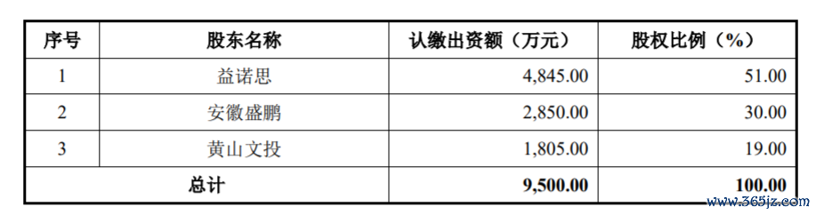 黄山益诺思设立时的股东及出资结构 来源:招股书