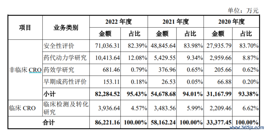 益诺思所在的赛道是药明康德、药明生物等千亿巨头领衔的CXO,招股书显示,该公司是一家专业提供生物医药非临床研究服务为主的综合研发服务(CRO)企业,服务内容主要涵盖生物医药早期成药性评价、非临床研究以及临床检测及转化研究三大板块,其中非临床研究板块具体包括非临床安全性评价、非临床药代动力学研究、非临床药效学研究。