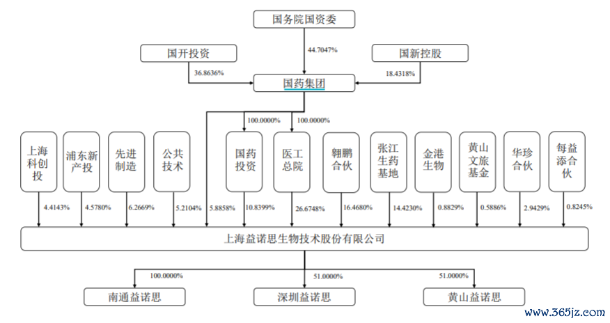 益诺思成立于2010年,2017年成立股份公司,国药集团是其实控人。招股书显示,截至招股说明书签署日,国药集团直接持有发行人622.3318万股股份,占发行人总股本的5.8858%,同时国药集团通过其下属全资子公司医工总院和国药投资间接持有发行人3966.6044万股,占发行人总股本的37.5147%,合计持有公司43.4005%的股份,实际支配的股份表决权超过30%,为公司实控人。